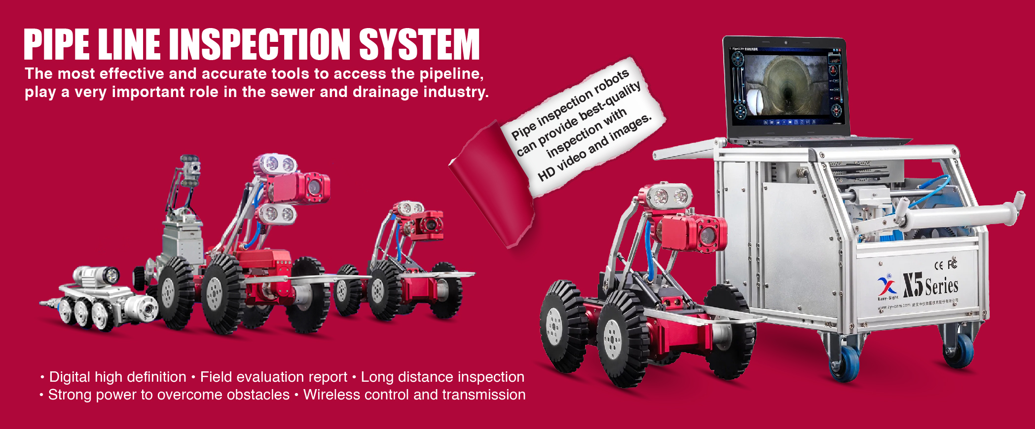 CCTV pipe inspection robots, as the most effective and accurate tools to access the pipeline, play a very important role in the sewer and drainage industry. With state-of-the-art technology, Easy-Sight CCTV pipe inspection robots for sale can provide best-quality inspection with HD video and images.