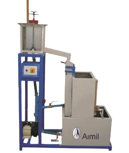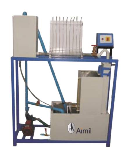 The apparatus consists of a glass tube with one end having bell mouth entrance connected to a constant head water tank and at the other end a valve is provided to vary the flow rate. The tank is of sufficient capacity to store water for conducting the test. A capillary tube is introduced centrally in the bell mouth for feeding dye from a small container placed at the top of tank, through polythene tubing. By varying the rate of flow, the Reynold's number is changes. This also changes the type of flow. Visual observation of dye(Thread) will indicate the type of flow, which can be confirmed from the Reynold's number computed. Present setup is self contained water re-circulating unit, provided with a sump tank and a centrifugal pump etc. Flow control valve and by pass valve are fitted in water line. Flow rate of water is measured with the help of measuring cylinder and stop watch.