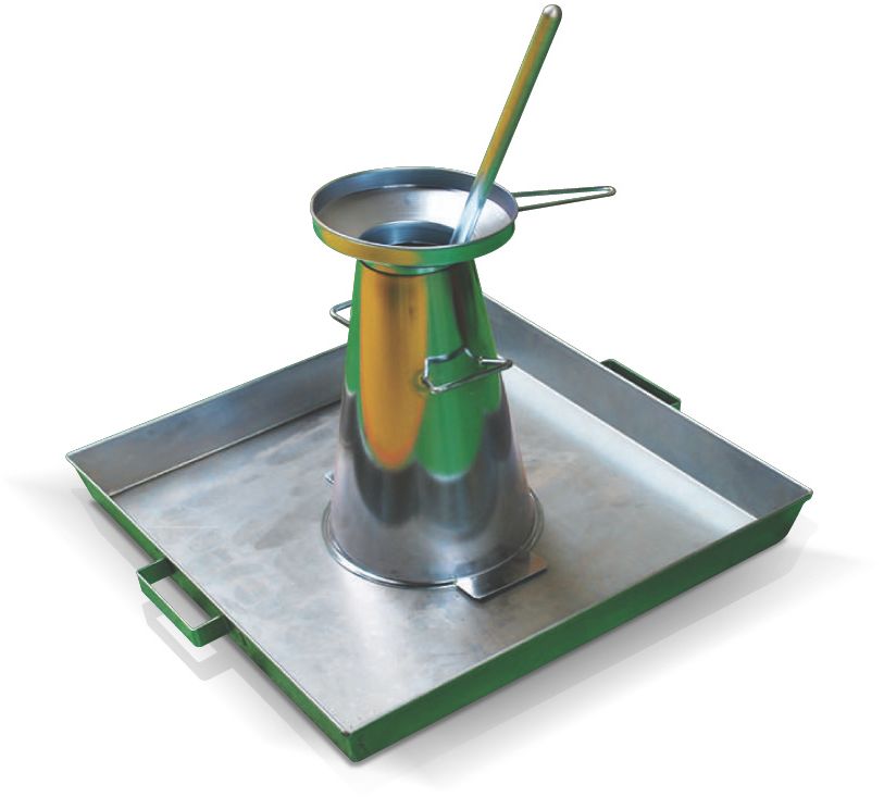 - With stainless steel slump set, the supplied slump cone funnel and tamping rod are made of galvanized steel.
