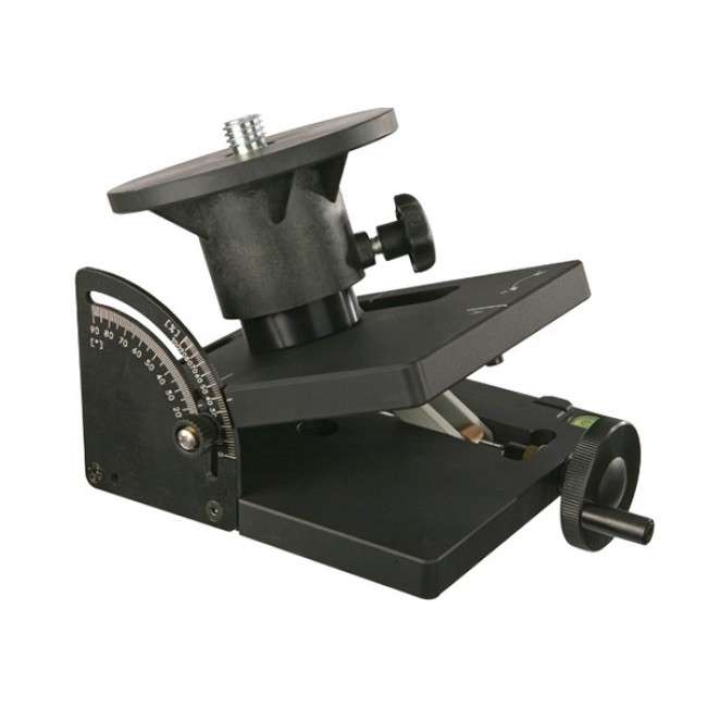 Can set slopes of 0 to 90 degrees with graduated slow motion screw. Fits any tripod with 5/8” connection.