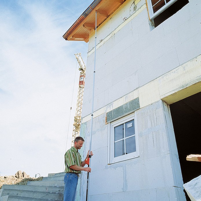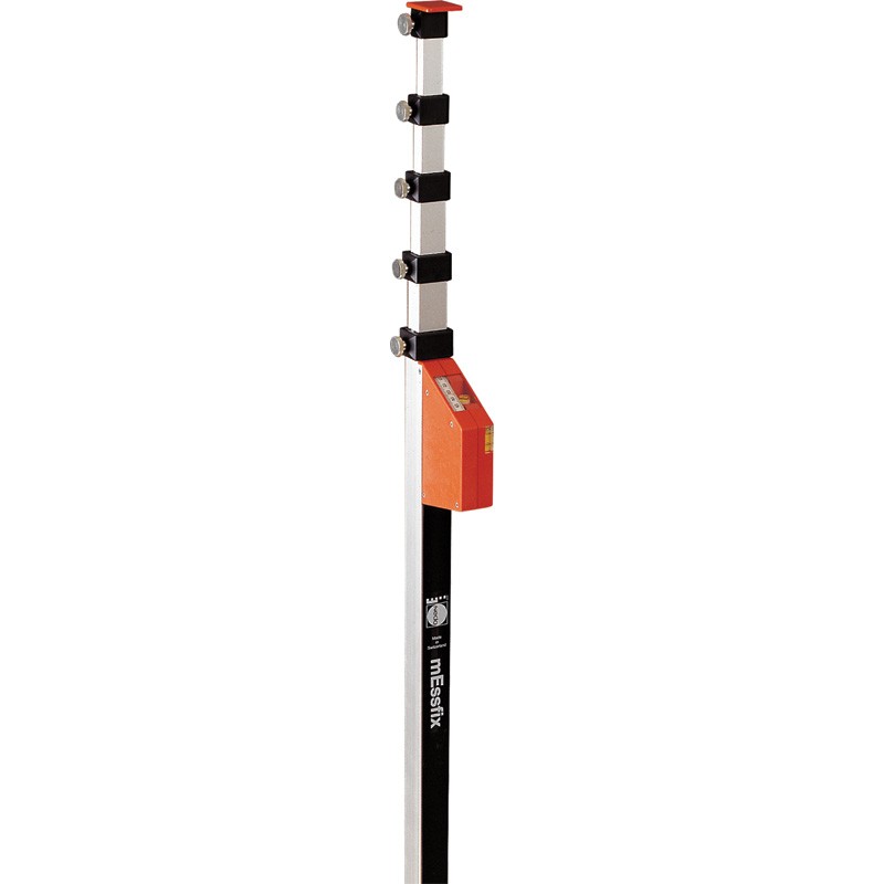 A robust 5m telescope staff for determining differences in height with a rotating laser and receiver. Accommodates all types of laser receivers. Circular bubble to ensure alignment. Anodised aluminium sections can be fixed in place with clamping screws. Weight: 2kg.