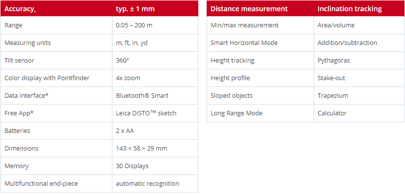 The Disto D510 is Bluetooth® Smart Ready so it easily transfers measuring information to other devices such as the iPad and iPhone simply and can be used with the FREE Leica Disto Sketch app (available from iTunes). Easily draw sketches and assign measuring results. Use the app to edit or overwrite photographs and draw ground plans or tables.
