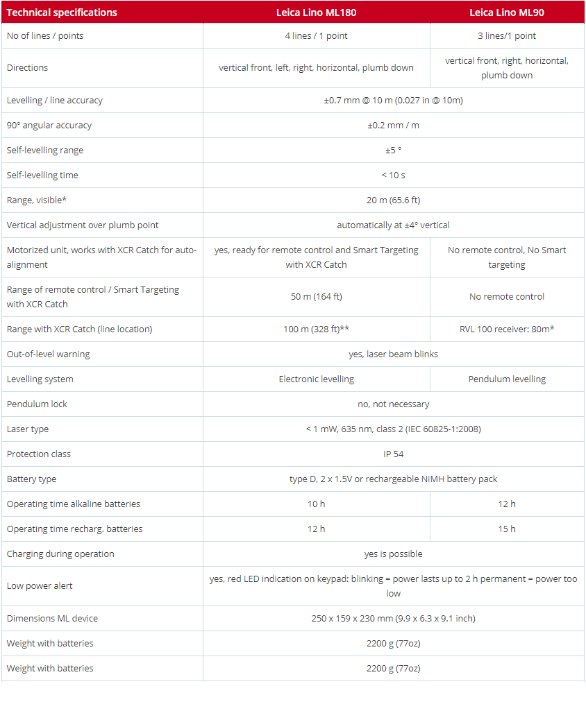 | Package Includes | Leica Lino ML180 multi line laser |