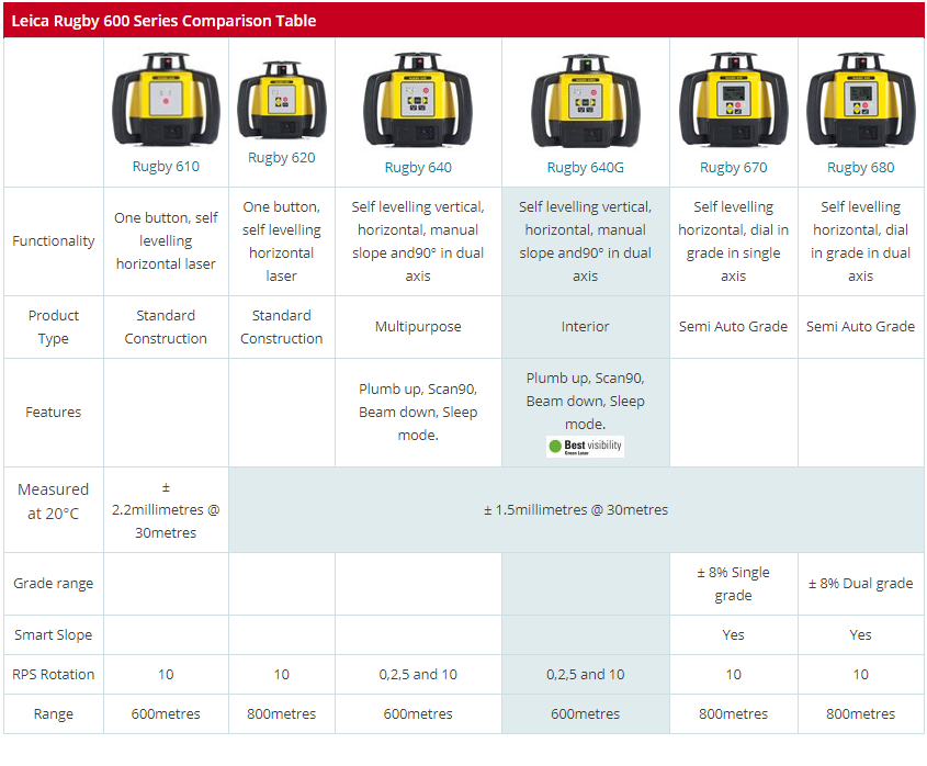 The new Rugby 640G rotating laser and Rod Eye 120G laser receiver from Leica Geosystems has been released which features bright green coloured beams for improved visibility.