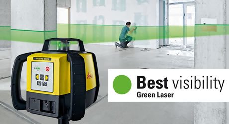 When aligning and levelling in and around constructions, red beams can be tough to see. The new Leica Rugby 640G rotating laser with green beam allows you to easily see where you’re working.