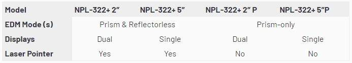 The Nikon NPL-322+ Series of mechanical total stations include 2″ and 5″ accuracies, reflectorless and prism-only models. All four NPL-322+ models feature dual axis compensation to correct for errors in tilt in the horizontal and vertical axes, wireless Bluetooth connections to external data collectors and 50,000 point onboard storage. All models have a 3,000m (9,840 ft) range to a single prism, with reflectorless models additionally having a 400m (1,300 ft) non-prism range.The Nikon NPL-322+ is built tough for all occasions.